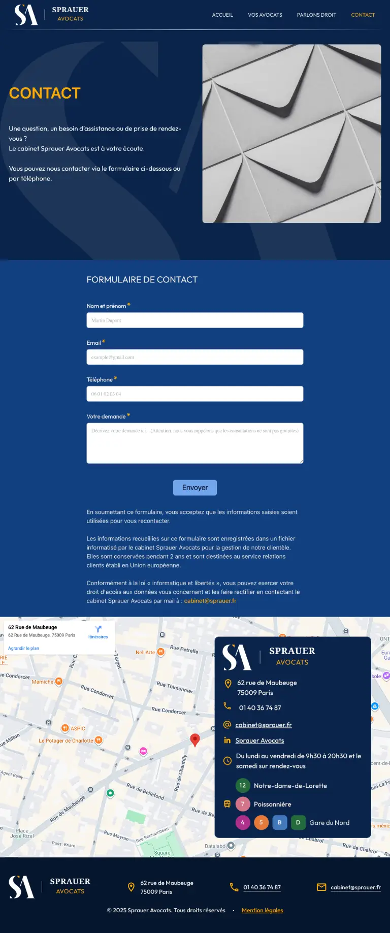 Le site a été repensé intégralement afin d’incarner visuellement les valeurs de confiance et de sérieux propres au cabinet.